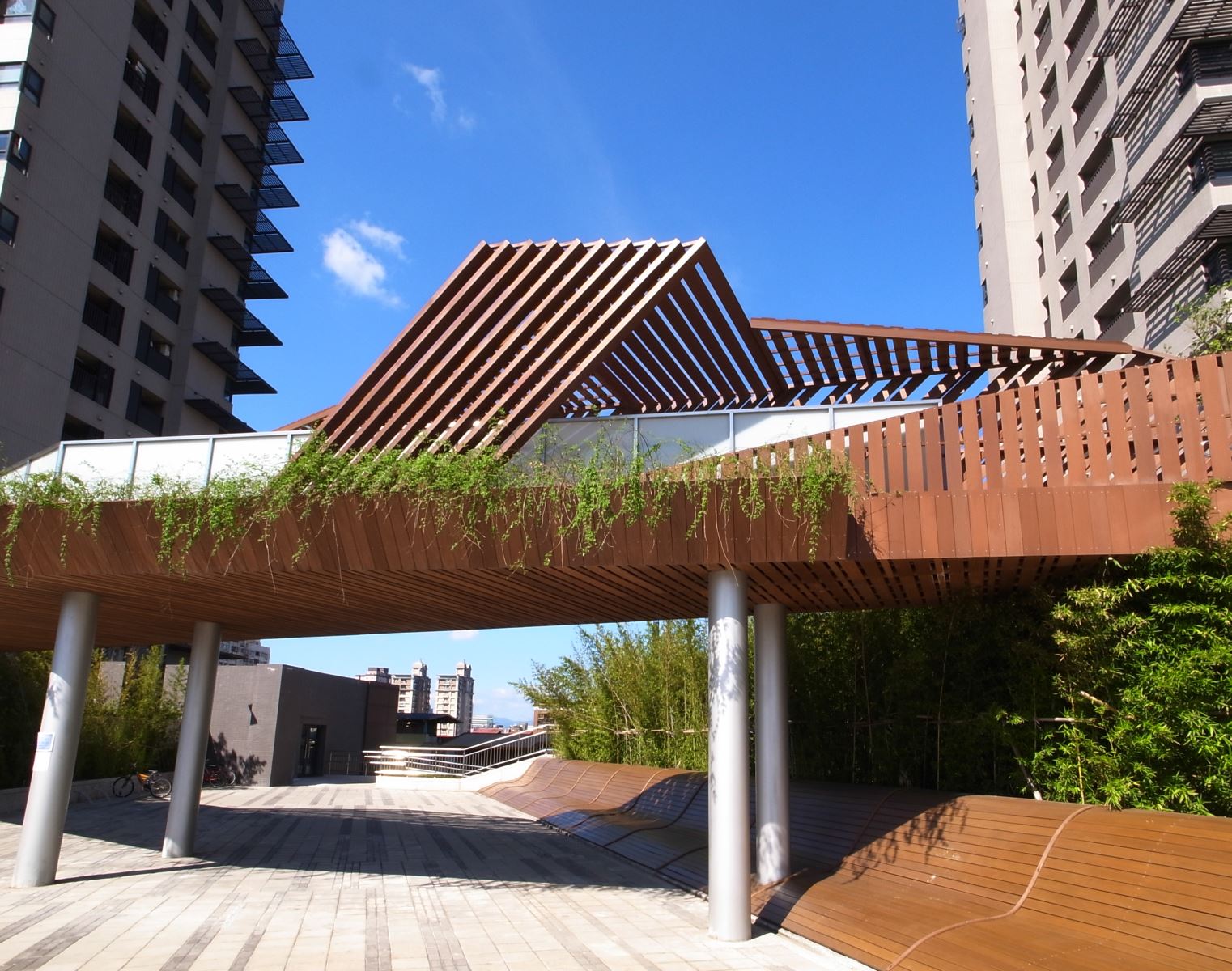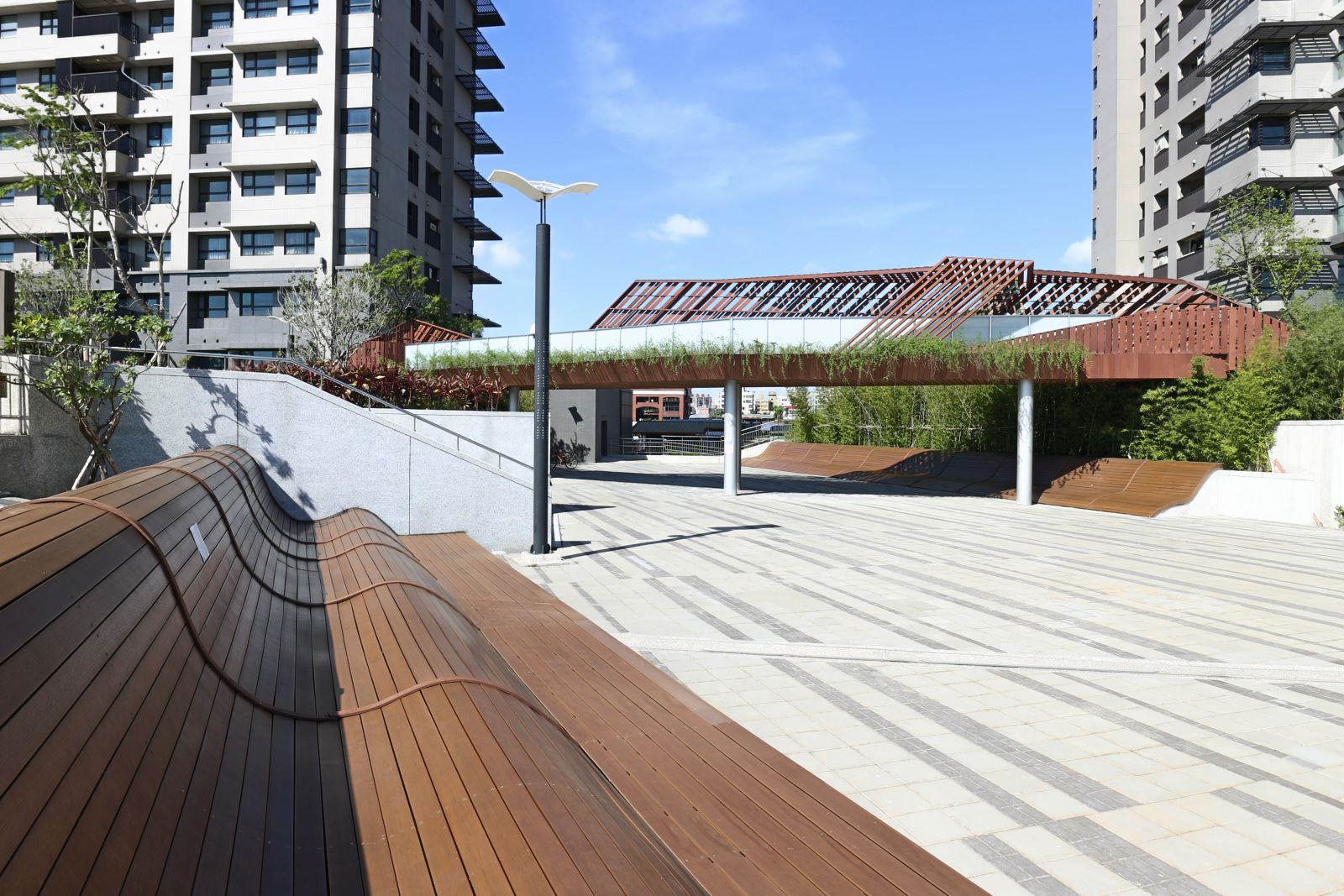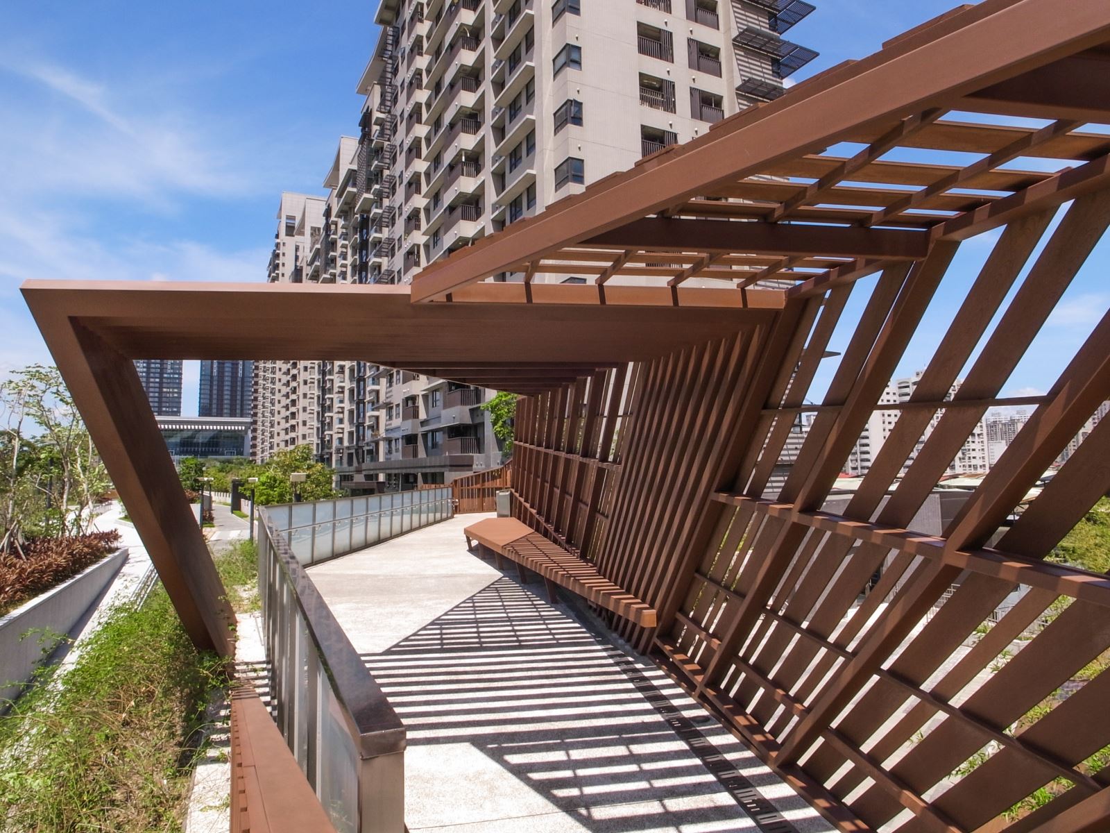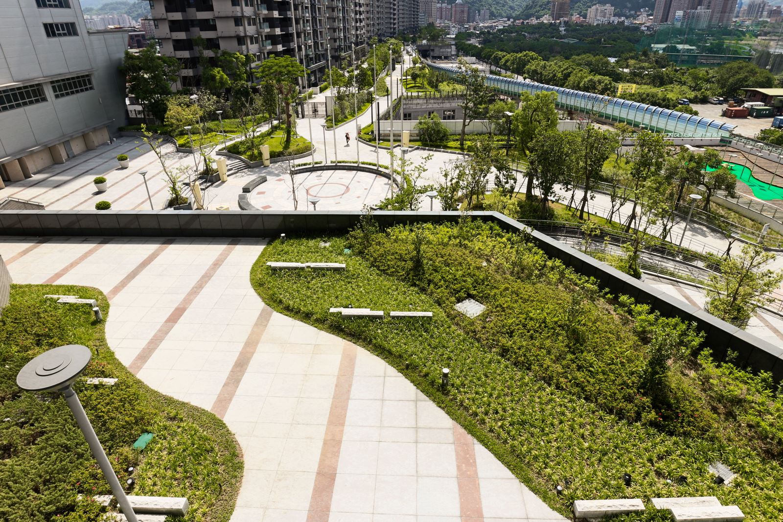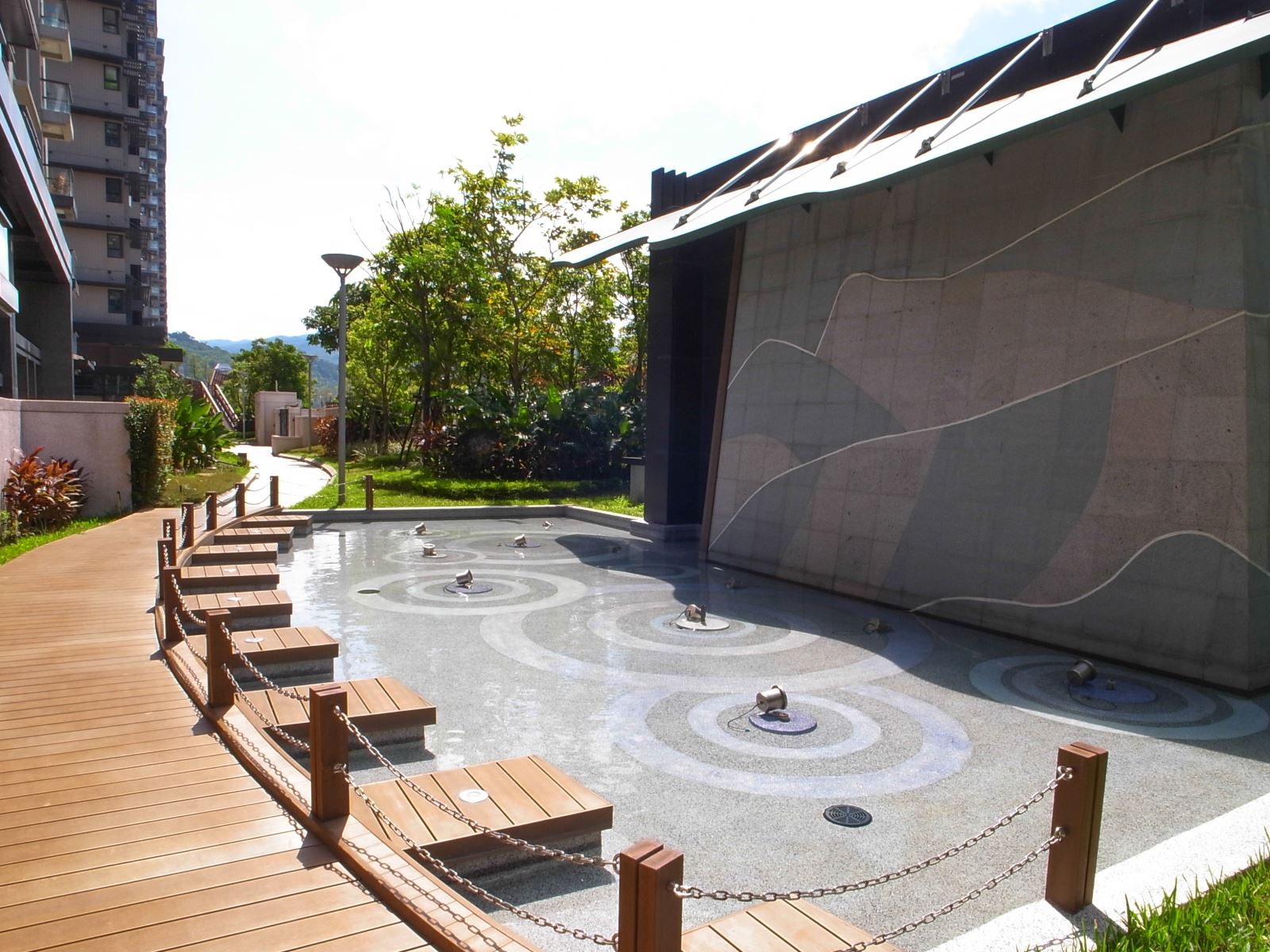 整體設計著重於開放空間與植栽的層次感,營造出豐富的視覺景觀。社區內的步道與休憩區穿梭於綠意之間,讓居民能隨時親近自然。透過水景、植栽與空間規劃的結合,美河市的景觀設計不僅提升了居住品質,也為住戶提供了兼具美觀與實用性的生活環境,完美詮釋了都會中的綠洲生活。