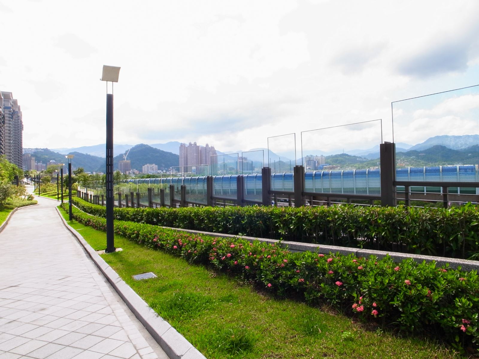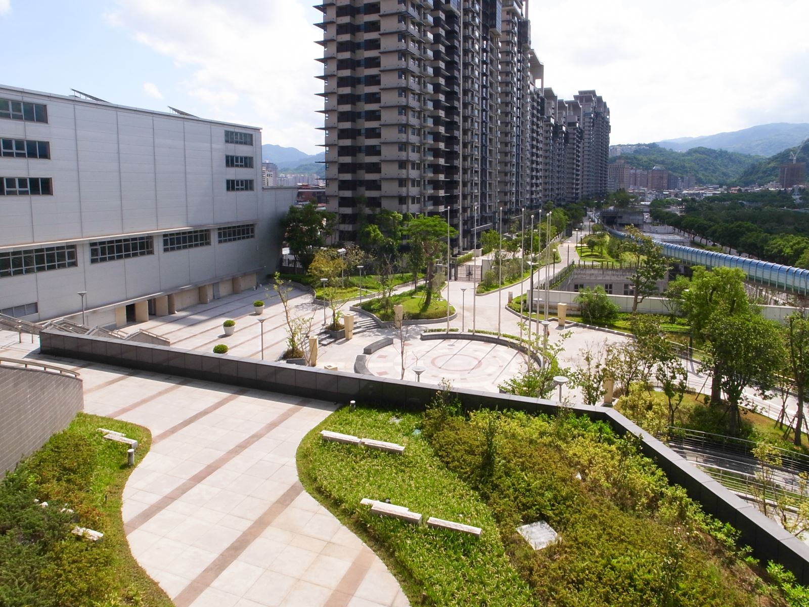 日勝生美河市的景觀設計,其核心概念為「水岸花園城市」,旨在創造與自然共生共榮的居住環境。設計上巧妙運用新店溪的水岸景觀,並規劃了寬敞的空中花園平台,串聯起社區空間與戶外綠意。